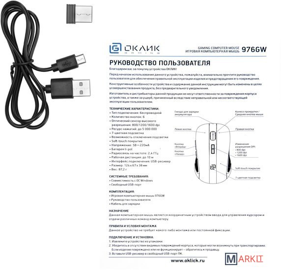 Markit » Компьютерные мыши » Игровая мышь Oklick 976GW